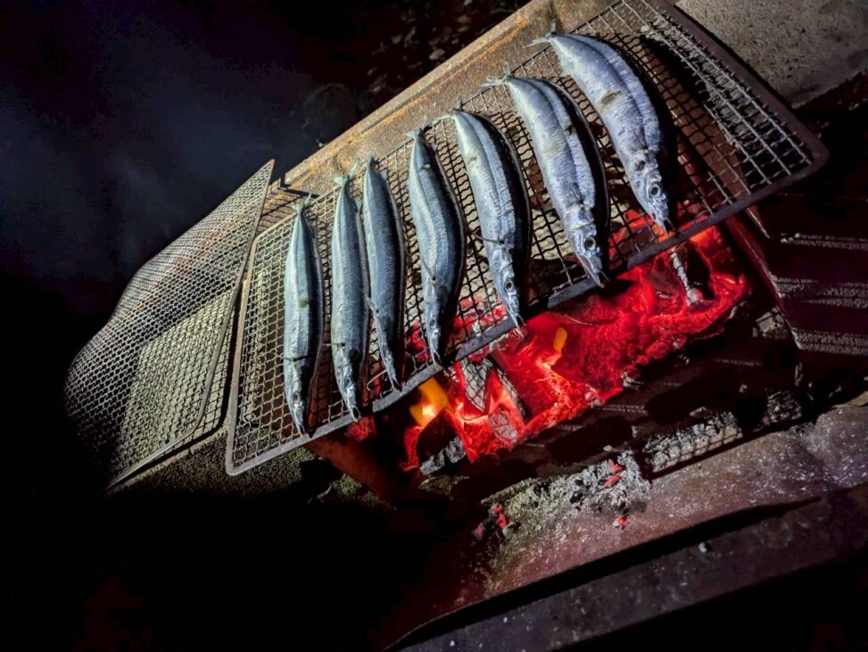 炭でさんまを焼きました