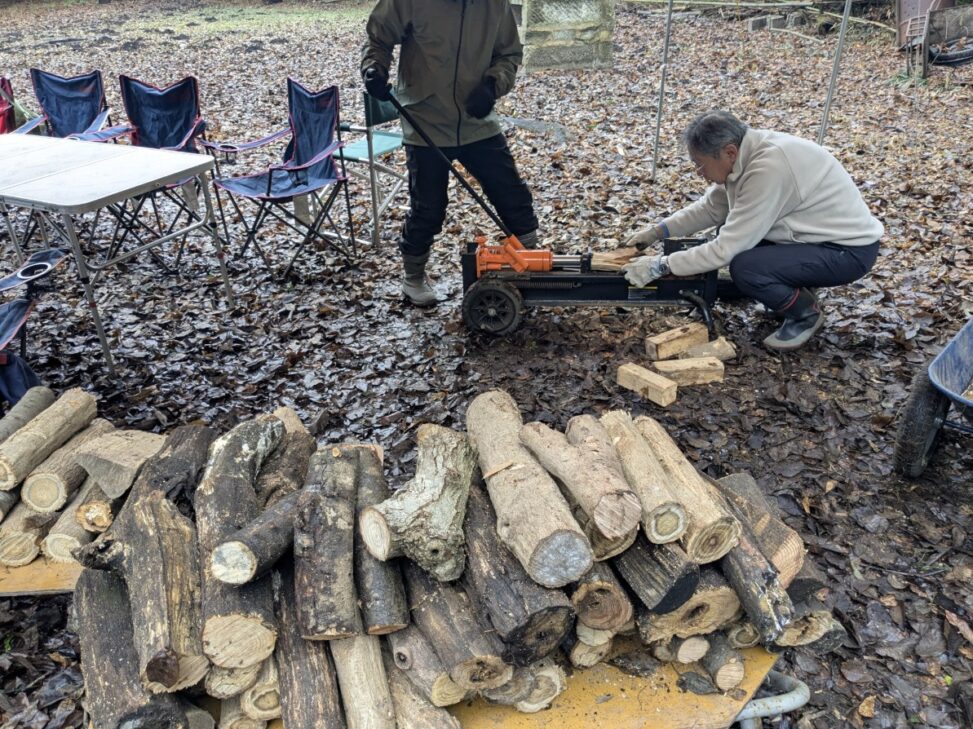 油圧の手動薪割機で