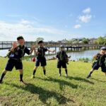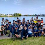 開会セレモニーの後、早速インストラクターから釣り場での安全とマナーの説明から活動スタート!